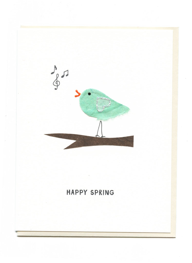 "HAPPY SPRING" Bird Singing on Branch